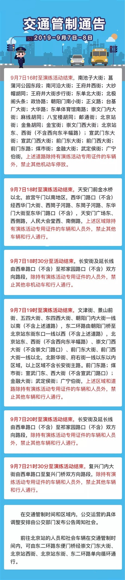 北京市公安局發(fā)布通告:9月7日至8日,也就是本周六和周日,在天安門地區(qū)及長安街沿線將舉行國慶70周年慶祝活動第一次全流程演練。屆時,天安門地區(qū)及相關(guān)道路將分時、分段采取交通管制措施。具體管制路段如下↓↓ 擴散周知
